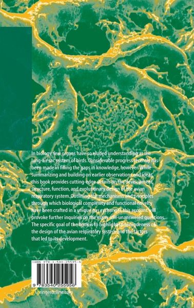 In biology, few organs have been as elusive as the lung-air sac system of birds. Considerable progress has recently been made to fill the gaps in the knowledge. While summarizing and building on earlier observations and ideas, this book provides cutting-edge details on the development, structure, function, and the evolutionary design of the avian respiratory system. Outlining the mechanisms and principles through which biological complexity and functional novelty have been crafted in a unique gas exchanger, this account will provoke further inquiries on the many still uncertain issues. The specific goal here was to highlight the uniqueness of the design of the avian respiratory system and the factors that obligated it.