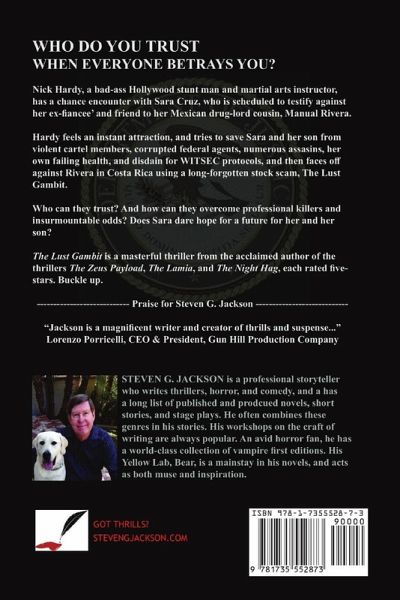 The Lust Gambit is a mainstream thriller in which a bad-ass Hollywood stunt man and martial arts instructor has a chance encounter with a reluctant WITSEC witness. It's a fast-paced, character-driven, high concept thriller that pits Nick Hardy and Sara Cruz against her cousin, Manuel Rivera, the leader of the largest drug cartel in Mexico. Hardy becomes the hero she needs, and they execute a risky stock market scam (The Lust Gambit) to cripple Rivera and assure her safety.