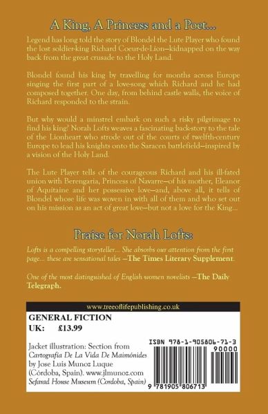 Legend has long told the story of Blondel the Lute Player who found the lost soldier-king Richard Coeur-de-Lion-kidnapped on the way back from the great crusade to the Holy Land. Blondel found his king by travelling for months across Europe singing the first part of a love-song which Richard and he had composed together. One day, from behind castle walls, the voice of Richard responded to the strain. But why would a minstrel embark on such a risky pilgrimage to find his king? Norah Lofts weaves a fascinating back-story to the tale of the Lionheart who strode out of the courts of twelfth-century Europe to lead his knights onto the Saracen battlefield-inspired by a vision of the Holy Land. The Lute Player tells of the courageous Richard and his ill-fated union with Berengaria, Princess of Navarre-of his mother, Eleanor of Aquitaine and her possessive love-and, above all, it tells of Blondel whose life was woven in with all of them and who set out on his mission as an act of great love-but not a love for the King...