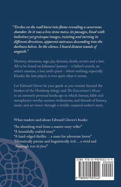 The latest novel from Edward Glover It's February, with no respite from winter's long encore of darkness and bone-numbing cold. A lone figure steps outside, drawn by the soft, beguiling fragments of music in the distance. Immersive yourself in mystery, obsession, rage, joy, demons, death and secrets in Edward Glover's latest novel, as you follow Johannes on a journey where nothing, especially Khadra the lute player, is ever quite what it seems.