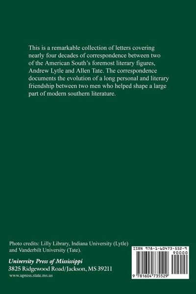The Lytle-Tate Letters: The Correspondence of Andrew Lytle and Allen Tate edited by Thomas Daniel Young and Elizabeth Sarcone This is a remarkable collection of letters covering nearly four decades of correspondence between two of the American South's foremost literary figures. The series begins in 1927 when Tate invited Lytle, who was then a student at the Yale School of Drama, to visit him at his apartment at 27 Bank Street in New York. Although they were acquaintances through their involvement with the Fugitives Movement at Vanderbilt, they had never been close friends because Lytle's association with the group occurred after Tate had left Nashville. But after Lytle's first visit with Tate and his wife Caroline Gordon, both the friendship and the correspondence grew. The letters in this long sequence of exchanges take on a different content and character during each of the decades of the correspondence. The early letters, between 1927 and 1939, show the development of the Lytle-Tate relationship through their common bond-their love for the South. These letters discuss plans for writing their southern biographies, the two Agrarian symposia-I'll Take My Stand (1930) and Who Owns America? (1936)-as well as Lytle's first novel, The Long Night (1936) and Tate's work on his novel, The Fathers. Although the letters of the forties deal with such basic questions as where each man should live and how he should support himself while he writes, their primary focus is first with Lytle's and then with Tate's editorship of The Sewanee Review. The letters of the fifties are by far the most valuable for literary commentary. In these Lytle reads and critiques many of Tate's essays and poems, and Tate, in turn, reads and responds to Lytle's plans for the novel he was to be so long in writing, The Velvet Horn. Although many letters in the final group-those of the sixties-are devoted to a discussion of Tate's guest editing of the special T.S. Eliot issue of The Sewanee Review, these are also the letters which reveal the depth of the Lytle-Tate friendship. In these they share their personal problems and advise each other in the difficulties each is forced to face. Tate gives support to Lytle during the long illness and subsequent loss of his wife Edna and, later, during Lytle's own bout with cancer. Similarly, Lytle sees Tate through his divorce from his second wife and into his next marriage. After a short time, Lytle brings consolation in the loss of one of the Tates' infant twin sons. The correspondence between Tate and Lytle documents the evolution of a long personal and literary friendship between two men who helped shape a large part of modern southern literature. Thomas Daniel Young (deceased) was Gertrude Conaway Vanderbilt Professor of English Emeritus at Vanderbilt University. Elizabeth Sarcone is a professor of English at Delta State University.