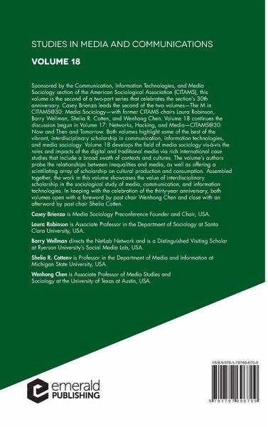 Volume 18 of Emerald Studies in Media and Communications celebrates the thirty year anniversary of the Communications, Information Technology, and Media Sociology Section of the American Sociological Association.
