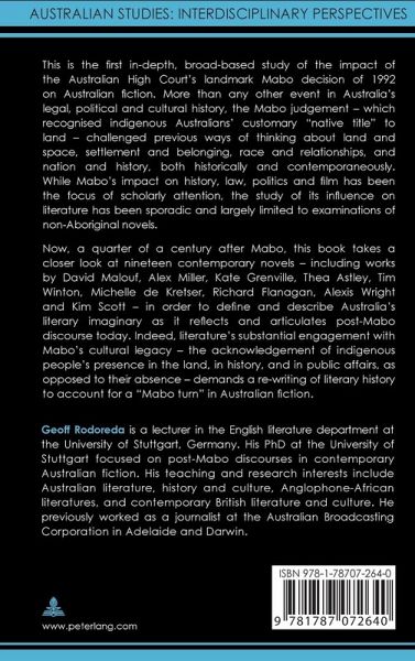 This is the first in-depth, broad-based study of the impact of the Australian High Court's landmark Mabo decision of 1992 on Australian fiction. More than any other event in Australia's legal, political and cultural history, the Mabo judgement - which recognised indigenous Australians' customary «native title» to land - challenged previous ways of thinking about land and space, settlement and belonging, race and relationships, and nation and history, both historically and contemporaneously. While Mabo's impact on history, law, politics and film has been the focus of scholarly attention, the study of its influence on literature has been sporadic and largely limited to examinations of non-Aboriginal novels.
