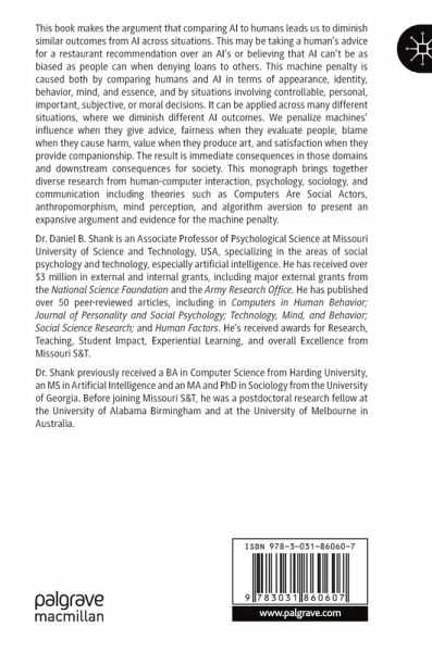 This book makes the argument that comparing AI to humans leads us to diminish similar outcomes from AI across situations. This may be taking a human s advice for a restaurant recommendation over an AI s or believing that AI can t be as biased as people can when denying loans to others. This machine penalty is caused both by comparing humans and AI in terms of appearance, identity, behavior, mind, and essence, and by situations involving controllable, personal, important, subjective, or moral decisions. It can be applied across many different situations, where we diminish different AI outcomes. We penalize machines influence when they give advice, fairness when they evaluate people, blame when they cause harm, value when they produce art, and satisfaction when they provide companionship. The result is immediate consequences in those domains and downstream consequences for society. This monograph brings together diverse research from human-computer interaction, psychology, sociology, and communication including theories such as Computers Are Social Actors, anthropomorphism, mind perception, and algorithm aversion to present an expansive argument and evidence for the machine penalty.