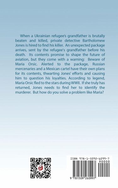 When a Ukrainian refugee's grandfather is brutally beaten and killed, private detective Bartholomew Jones is hired to find his killer. An unexpected package arrives, sent by the refugee's grandfather before his death. Its contents promise to shape the future of aviation, but they come with a warning: Beware of Maria Orsic. Alerted to the package, Russian mercenaries and a Mexican cartel have their own plans for its contents, thwarting Jones' efforts and causing him to question his loyalties. According to legend, Maria Orsic fled to the stars during WWII. If she truly has returned, Jones needs to find her to identify the murderer. But how do you solve a problem like Maria?