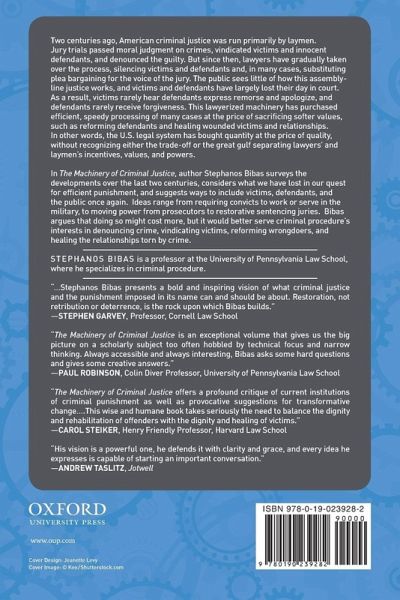 The Machinery of Criminal Justice explores the transformation of the criminal justice system and considers how criminal justice could better accommodate lay participation, values, and relationships.
