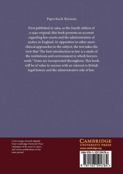 First published in 1964, as the fourth edition of a 1940 original, this book presents an account regarding law courts and the administration of justice in England. In opposition to other more clinical approaches to the subject, the text takes the view that 'The best introduction to law is a study of the institutions and environment in which lawyers work.' Notes are incorporated throughout. This book will be of value to anyone with an interest in British legal history and the administrative side of law.