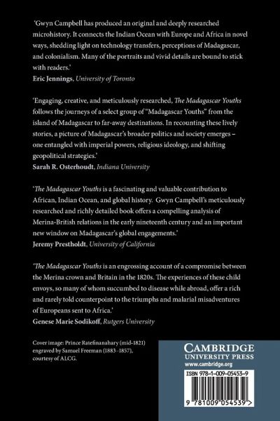Examines the untold history of approximately one hundred 'Madagascar Youths', young people who British authorities accepted for training abroad following a treaty signed in 1820 with King Radama of Madagascar, exploring their experiences and their subsequent impact on Malagasy-British relations and the modernisation in Madagascar.