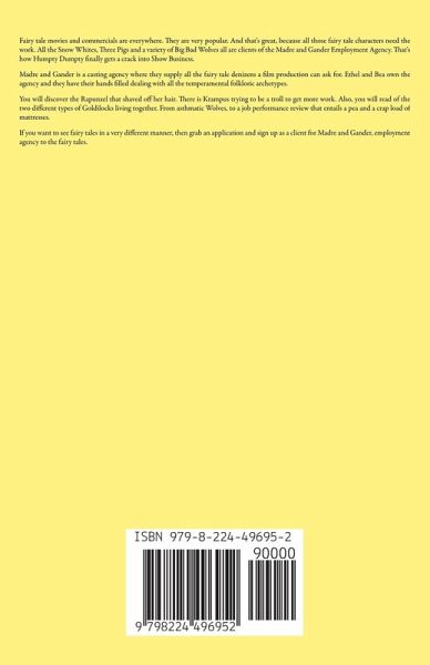 Fairy tale movies and commercials are everywhere. They are very popular. And that's great, because all those fairy tale characters need the work. All the Snow Whites, Three Pigs and a variety of Big Bad Wolves all are clients of the Madre and Gander Employment Agency. That's how Humpty Dumpty finally gets a crack into Show Business. Madre and Gander is a casting agency where they supply all the fairy tale denizens a film production can ask for. Ethel and Bea own the agency and they have their hands filled dealing with all the temperamental folkloric archetypes. You will discover the Rapunzel that shaved off her hair. There is Krampus trying to be a troll to get more work. Also, you will read of the two different types of Goldilocks living together. From asthmatic Wolves, to a job performance review that entails a pea and a crap load of mattresses. If you want to see fairy tales in a very different manner, then grab an application and sign up as a client for Madre and Gander, employment agency to the fairy tales.