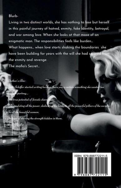 She's living in two distinct worlds. A definition of grace, serenity, love and ballistic, killer, wicked. Walking through this painful journey of hatred, enmity, fake identity, betrayal and war among love. The time spent building the boundaries and the will for the enemy who has been hiding. Would she remember her duties after stumbling upon that maze of an enigmatic man? Or the responsibilities would turn into a burden? ""She came near me smiling wickedly, the smile any guy would die for. Swaying her hips, showing her training she has taken for years, is there with her in her veins. So close to me, making my breath hitch in my throat, and breathing just inches away from my ear. Suddenly cocks her pistol and shoots thrice behind me, finishing three members of her own mafia as she whispered in my ear, ""Not that easily. You'll die from my hands, baby."" She walked away, giving me a wink. I could have finished her when her back was facing me. But I don't because as she said, ""not that easily."" What happens... when love comes in between the boundaries she has been building for years with the will she had secured from the enmity? The mafia's secret.