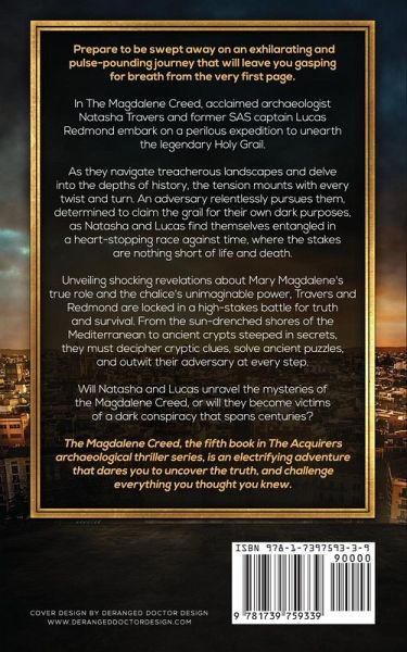 Prepare to be swept away on an exhilarating and pulse-pounding journey that will leave you gasping for breath from the very first page. In The Magdalene Creed, acclaimed archaeologist Natasha Travers and former SAS captain Lucas Redmond embark on a perilous expedition to unearth the legendary Holy Grail. As they navigate treacherous landscapes and delve into the depths of history, the tension mounts with every twist and turn. An adversary relentlessly pursues them, determined to claim the grail for their own dark purposes, as Natasha and Lucas find themselves entangled in a heart-stopping race against time, where the stakes are nothing short of life and death. Unveiling shocking revelations about Mary Magdalene's true role and the chalice's unimaginable power, Travers and Redmond are locked in a high-stakes battle for truth and survival. From the sun-drenched shores of the Mediterranean to ancient crypts steeped in secrets, they must decipher cryptic clues, solve ancient puzzles, and outwit their adversary at every step. Will Natasha and Lucas unravel the mysteries of the Magdalene Creed, or will they become victims of a dark conspiracy that spans centuries? The Magdalene Creed, the fifth book in The Acquirers archaeological thriller series, is an electrifying adventure that dares you to uncover the truth, and challenge everything you thought you knew.
