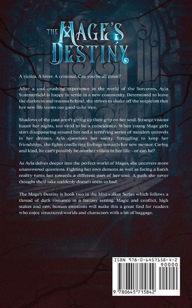 A victim. A lover. A criminal. Can you be all three? After a soul-crushing experience in the world of the Sorcerers, Ayla Summerfield is happy to settle in a new community. Determined to leave the darkness and trauma behind, she strives to shake off the suspicion that her new life seems too good to be true. Shadows of the past aren't giving up their grip on her soul. Strange visions haunt her nights, too vivid to be a coincidence. When young Mage girls start disappearing around her and a terrifying series of murders unravels in her dreams, Ayla questions her sanity. Struggling to keep her friendships, she fights conflicting feelings towards her new mentor. Caring and kind, he can't possibly be another villain in her life-or can he? As Ayla delves deeper into the perfect world of Mages, she uncovers more unanswered questions. Fighting her own demons as well as facing a harsh reality turns her towards a different part of her soul. A path she never thought she'd take suddenly doesn't seem so bad. The Mage's Destiny is book two in the Mistwalker Series which follows a thread of dark romance in a fantasy setting. Magic and conflict, high stakes and raw, human emotions will make this a great find for readers who enjoy structured worlds and characters with a bit of baggage.