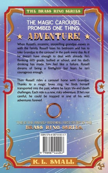 THE MAGIC CAROUSEL PROMISES ONE THING: ADVENTURE! When Russell's eccentric, storytelling grandpa moves in with the family, Russell loses his bedroom and has to take Grandpa to the carousel in the park every day. As if he doesn't have enough to deal with already. He's flunking fifth grade, bullied at school, and his dad's drinking has made him feel like a failure. Russell dreams of being a firefighter but fears he isn't courageous enough. Then Russell rides a carousel horse with Grandpa. Thanks to a magic brass ring, he finds himself magically transported into the past, where he faces life-and-death challenges. Each ride is a new, risky adventure. If he's not careful, he could be trapped in one of his wild adventures forever! This is the award-winning first story in the Brass Ring Series.