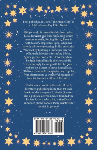 First published in 1910, "The Magic City" is a children's novel by Edith Nesbit. Philip's world is turned upside down when his older sister and only remaining family member marries, forcing him to move in with his new step sister, Lucy. When his sister is off honeymooning, Philip entertains himself by building a miniature city out of household objects including books, game pieces, bowls, etc. However, when he finds himself inside the city and the city seemingly teeming with life, he must embark on a quest to prove himself as a 'Deliverer' and save the magical metropolis from destruction. A wonderful example of Nesbit's fantastic children's literature, "The Enchanted Castle" would make for perfect bedtime reading and is worthy of inclusion in any family collection. Edith Nesbit (1858 - 1924) was an English poet and author. She is perhaps best remembered for her children's literature, publishing more than 60 such books under the name E. Nesbit. She was also a political activist and co-founded the Fabian Society, which had a significant influence on the Labour Party and British politics in general. Other notable works by this author include: "The Prophet's Mantle" (1885), "Something Wrong" (1886), and "The Marden Mystery" (1896). Many vintage books such as this are becoming increasingly scarce and expensive. It is with this in mind that we are republishing this volume now in an affordable, modern, high-quality edition complete with a specially-commissioned new biography of the author.