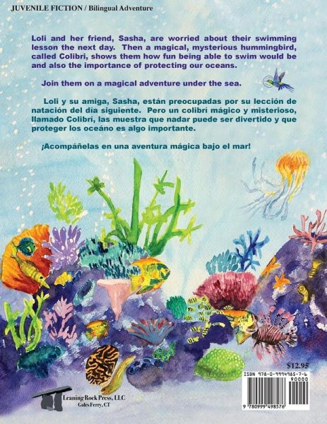This bilingual (English/Spanish) whimsical tale with bright, captivating watercolors gently touches on the value of recognizing and overcoming fear, highlights marine conservation and portrays multicultural friendship. The main characters, two young girls, Loli and Sasha are nervous about taking swimming lessons. A mysterious hummingbird, Colibrí, takes them on a magical under-the-sea adventure. The girls discover how much fun swimming can be, plus they learn the importance of protecting our oceans. Cleverly woven into the storyline is a beautiful rhyming song about the fascinating sea animals the girls encounter. Music & and lyrics of the under-the-sea song plus fun ocean and animal facts are included.