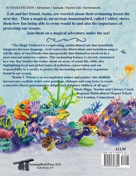 This whimsical tale with bright, captivating watercolors gently touches on the value of recognizing and overcoming fear, highlights marine conservation, and portrays multicultural friendship. The main characters, two young girls, Loli and Sasha are nervous about taking swimming lessons. A mysterious hummingbird, Colibri, takes them on a magical under-the-sea adventure that is designed to not only boost their confidence about learning to swim but is devised to teach them about the impressive array of sea life and how they can respect and care for the ocean environment. Cleverly woven into the storyline is a beautiful rhyming song about the fascinating sea animals the girls encounter. The music and lyrics of the under-the-sea song plus fun ocean and animal facts are included.