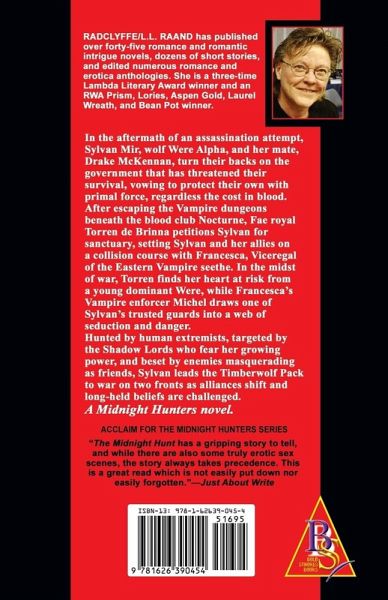 With her Pack under siege by humans and Praeterns, Sylvan turns her back on the government that has marginalized her wolves and threatened their survival. Hunted by human extremists, targeted by the Shadow Lords who fear her growing power, and beset by enemies masquerading as friends, Sylvan leads the Timberwolf Pack deep into the Adirondack wilderness where she challenges her allies to prove their loyalty-on pain of death. Drake, Sylvan's mate and mother of their newborn young, struggles to shield Sylvan from the feral rage that threatens to turn Sylvan rogue, destroying their union and their pack. A Midnight Hunters novel