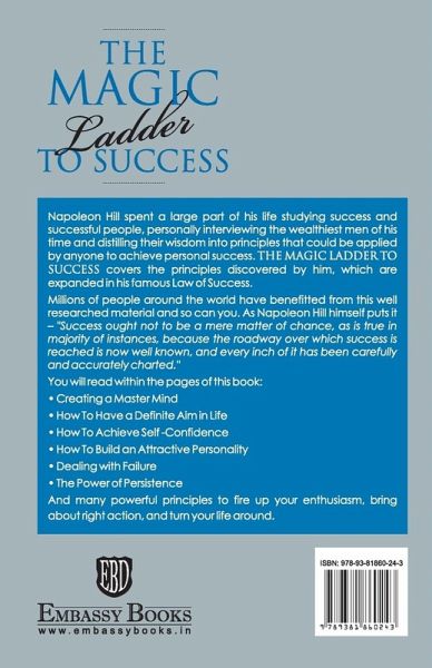 Napoleon Hill spent a large part of his life studying success and successful people, personally interviewing the wealthiest men of his time and distilling their wisdom into principles that could be applied by anyone to achieve personal success. THE MAGIC LADDER TO SUCCESS covers the principles discovered by him, which are expanded in his famous Law of Success. Millions of people around the world have benefitted from this well researched material and so can you. You will read within the pages of this book : 1 Creating a Master Mind. 2 How To Have a Definite Aim in Life. 3 How To Achieve Self - Confidence. 4 How To Build an Attractive Personality. 5 Dealing with Failure. 6 The Power of Persistence.
