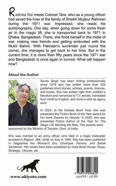 Radhika Rai meets Colonel Tara, who as a young officer had saved the lives of the family of Sheikh Mujibur Rahman during the 1971 war. Impressed, she reads his autobiography. One day, when going down for some fresh air in the magic lift, she is transported back to 1971 in Dhaka, Bangladesh. There, she finds herself in the midst of war, making new friends and getting embroiled with the Mukti Bahini. With Pakistan's surrender just round the corner, she manages to get back to her time. But in the current time, it is more than fifty years since the 1971 war and Bangladesh is once again in turmoil. What will happen now?…mehr