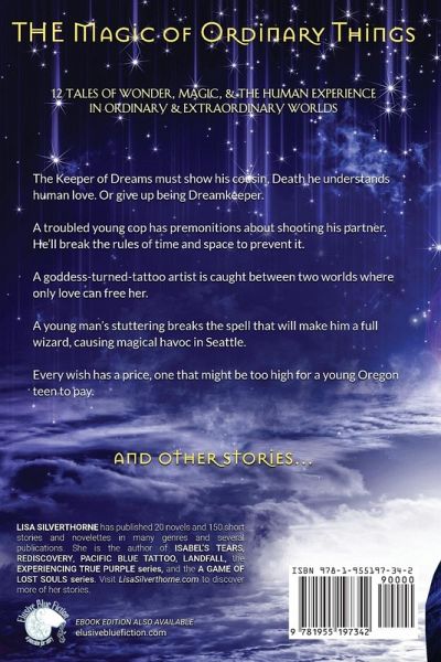 12 Tales of Wonder, Magic, & the Human Experience in Ordinary & Extraordinary Worlds The Keeper of Dreams must show his cousin, Death he understands human love. Or give up being Dreamkeeper. A troubled young cop has premonitions about shooting his partner. He'll break the rules of time and space to prevent it. A goddess-turned-tattoo artist is caught between two worlds where only love can free her. A young man's stuttering breaks the spell that will make him a full wizard, causing magical havoc in Seattle. Every wish has a price, one that might be too high for a young Oregon teen to pay. and other stories...