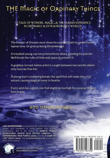 12 Tales of Wonder, Magic, & the Human Experience in Ordinary & Extraordinary Worlds The Keeper of Dreams must show his cousin, Death he understands human love. Or give up being Dreamkeeper. A troubled young cop has premonitions about shooting his partner. He'll break the rules of time and space to prevent it. A goddess-turned-tattoo artist is caught between two worlds where only love can free her. A young man's stuttering breaks the spell that will make him a full wizard, causing magical havoc in Seattle. Every wish has a price, one that might be too high for a young Oregon teen to pay. and other stories...
