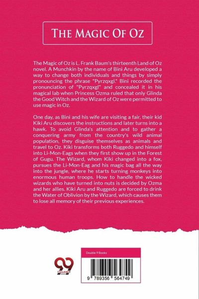 The Magic of Oz is L. Frank Baum's thirteenth Land of Oz novel. A Munchkin by the name of Bini Aru developed a way to change both individuals and things by simply pronouncing the phrase ""Pyrzqxgl."" Bini recorded the pronunciation of ""Pyrzqxgl"" and concealed it in his magical lab when Princess Ozma ruled that only Glinda the Good Witch and the Wizard of Oz were permitted to use magic in Oz. One day, as Bini and his wife are visiting a fair, their kid Kiki Aru discovers the instructions and later turns into a hawk. To avoid Glinda's attention and to gather a conquering army from the…mehr