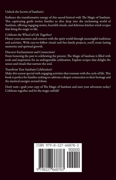 Unlock the Secrets of Samhain! Embrace the transformative energy of this sacred festival with The Magic of Samhain. This captivating guide invites families to dive deep into the enchanting world of Samhain, offering engaging stories, heartfelt rituals, and delicious kitchen witch recipes that bring the magic to life. Celebrate the Wheel of Life Together! Honor your ancestors and connect with the spirit world through meaningful traditions and activities. With easy-to-follow rituals and fun family projects, you'll create lasting memories and spiritual growth. Discover Enchantment and Connection! From honoring the past to celebrating the present, The Magic of Samhain is filled with tools and inspiration for an unforgettable celebration. Explore recipes that delight the senses and rituals that nurture the soul. Transform Your Samhain Celebration! Make this season special with engaging activities that resonate with the cycle of life. This book is perfect for families seeking to cultivate a deeper connection to their heritage and the mystical energies around them. Don't wait-grab your copy of The Magic of Samhain and start your adventure today! Celebrate together and let the magic unfold!