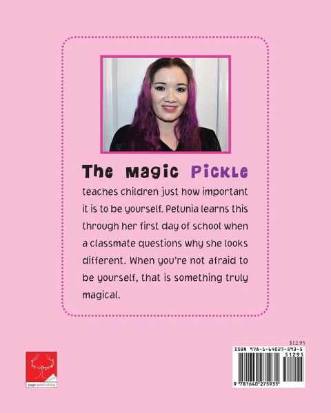 The Magic Pickle teaches children just how important it is to be yourself. Petunia learns this through her first day of school when a classmate questions why she looks different. When you're not afraid to be yourself, that is something truly magical.