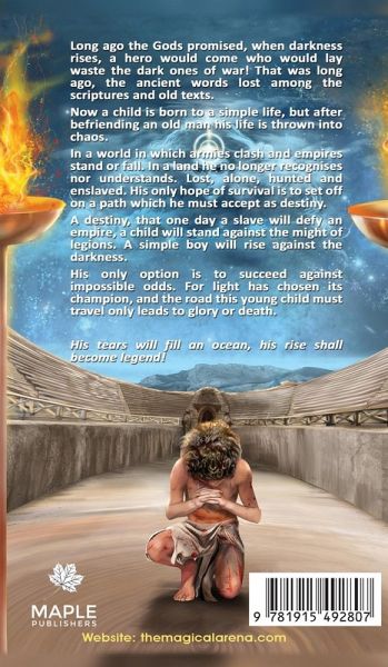The ancient scriptures tell of a child who would carry the favour of the God's. A promise forgotten by most, now lost in decaying parchment and dusty scrolls. A child living a simple life is befriended by an old man, after which his life is thrown into chaos. In a world where armies clash and cities fall. His only hope of survival is to seek sanctuary. But by doing so leads him to a place where others seldom return. For in the Arena there is only glory or death. The Gods will have their due and a champion must rise!