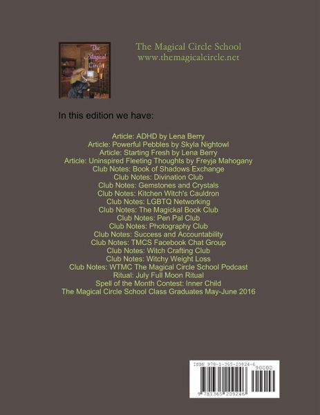 In this edition we have: Article: ADHD by Lena Berry Article: Powerful Pebbles by Skyla Nightowl Article: Starting Fresh by Lena Berry Article: Uninspired Fleeting Thoughts by Freyja Mahogany Club Notes: Book of Shadows Exchange Club Notes: Divination Club Club Notes: Gemstones and Crystals Club Notes: Kitchen Witch's Cauldron Club Notes: LGBTQ Networking Club Notes: The Magickal Book Club Club Notes: Pen Pal Club Club Notes: Photography Club Club Notes: Success and Accountability Club Notes: TMCS Facebook Chat Group Club Notes: Witch Crafting Club Club Notes: Witchy Weight Loss Club Notes: WTMC The Magical Circle School Podcast Ritual: July Full Moon Ritual Spell of the Month Contest: Inner Child The Magical Circle School Class Graduates May-June 2016