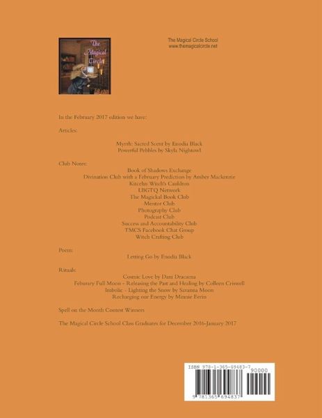 In the February 2017 edition we have: Articles: Myrrh: Sacred Scent by Enodia Black Powerful Pebbles by Skyla Nightowl Club Notes: Book of Shadows Exchange, Divination Club with a February Prediction by Amber Mackenzie, Kitchen Witch's Cauldron, LBGTQ Network,The Magickal Book Club ,Mentor Club, Photography Club,Podcast Club,Success and Accountability Club, TMCS Facebook Chat Group,and Witch Crafting Club Poem: Letting Go by Enodia Black Rituals: Cosmic Love by Dani Dracaena,February Full Moon : Releasing the Past and Healing by Colleen Criswell,Imbolic: Lighting the Snow by Savanna Moon, and Recharging Our Energy by Minnie Eerin Spell of the Month Contest Winners: Rose Quartz The Magical Circle School Class Graduates December 2016 - January 2017