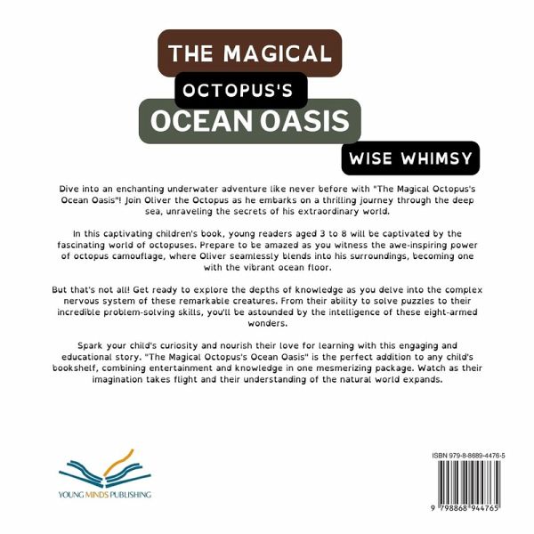Dive into an enchanting underwater adventure like never before with "The Magical Octopus's Ocean Oasis"! Join Oliver the Octopus as he embarks on a thrilling journey through the deep sea, unraveling the secrets of his extraordinary world. In this captivating children's book, young readers aged 3 to 8 will be captivated by the fascinating world of octopuses. Prepare to be amazed as you witness the awe-inspiring power of octopus camouflage, where Oliver seamlessly blends into his surroundings, becoming one with the vibrant ocean floor. But that's not all! Get ready to explore the depths of knowledge as you delve into the complex nervous system of these remarkable creatures. From their ability to solve puzzles to their incredible problem-solving skills, you'll be astounded by the intelligence of these eight-armed wonders. "The Magical Octopus's Ocean Oasis" is not just an enchanting tale - it's an educational journey. Young readers will dive headfirst into the intriguing world of octopuses, learning about their unique hunting techniques and how they deftly catch their prey. With beautiful illustrations that bring the deep sea to life, this book is both visually stunning and intellectually stimulating. Spark your child's curiosity and nourish their love for learning with this engaging and educational story. "The Magical Octopus's Ocean Oasis" is the perfect addition to any child's bookshelf, combining entertainment and knowledge in one mesmerizing package. Watch as their imagination takes flight and their understanding of the natural world expands. Don't miss out on this magical opportunity to embark on a captivating underwater journey. Let your child's imagination run wild as they uncover the wonders of octopus intelligence and adaptability. Get your hands on "The Magical Octopus's Ocean Oasis" today and open up a world of exploration and excitement for your little ones!