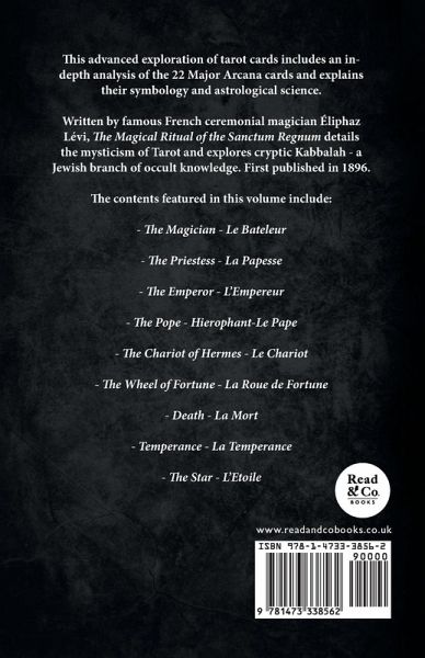This advanced exploration of tarot cards includes an in-depth analysis of the 22 Major Arcana cards and explains their symbology and astrological science. Written by famous French ceremonial magician Éliphaz Lévi, The Magical Ritual of the Sanctum Regnum details the mysticism of Tarot and explores cryptic Kabbalah - a Jewish branch of occult knowledge. First published in 1896. The contents featured in this volume include: - The Magician - Le Bateleur - The Priestess - La Papesse - The Emperor - L'Empereur - The Pope - Hierophant-Le Pape - The Chariot of Hermes - Le Chariot - The Wheel of Fortune - La Roue de Fortune - Death - La Mort - Temperance - La Temperance - The Star - L'Etoile