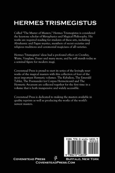 This volume of Covenstead Press's Magician's Library is a compendium of four vital hermetic texts in one place. Contains The Kybalion, The Emerald Tablet, The Poemander (or Corpus Hermeticum) and the Hermetic Arcanum, in one high-quality paperback.