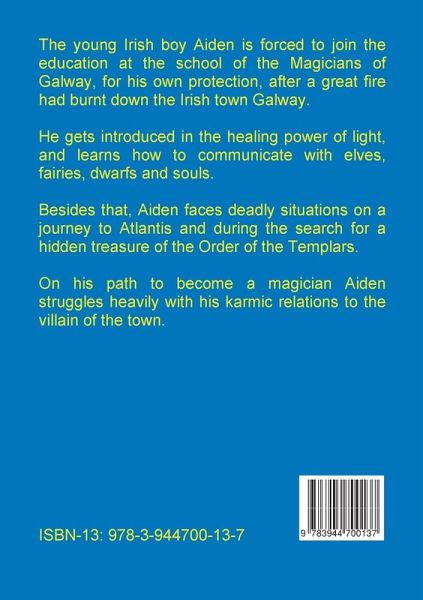 The young Irish boy Aiden is forced to join the education at the school of the Magicians of Galway, for his own protection, after a great fire had burnt down the Irish town Galway. He gets introduced in the healing power of light, and learns how to communicate with elves, fairies, dwarfs and souls. Besides that, Aiden faces deadly situations on a journey to Atlantis and during the search for a hidden treasure of the Order of the Templars. On his path to become a magician Aiden struggles heavily with his karmic relations to the villain of the town.