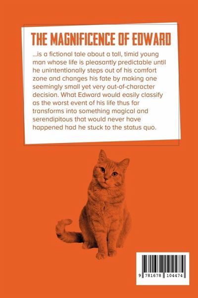 The Magnificence of Edward is a fictional tale about a tall, timid young man whose life is pleasantly predictable until he unintentionally steps out of his comfort zone, and changes his fate by making one seemingly small, yet very out-of-character, decision. What Edward would easily classify as the worst event of his life thus far, transforms into something magical andserendipitous that would never have happened had he stuck to the status quo.