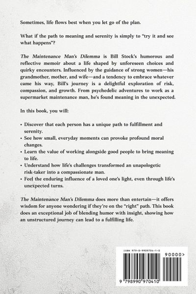 Raised in a rollicking family - arguing its most engaging entertainment - Bill Stock became brash and outspoken. Loving risk, he embraced gambling and a career in statistics without contradiction. Early on, he read westerns, science fiction, and works on mysticism - creating a mish-mashed view of life. He tried psychedelic drugs, made a Merry Prankster's inspired bus trip, backpacked across Oregon, learned Spanish with friends in España, rode a bicycle from Canada to New Orleans, and visited the dirt-floor cottage where his grandmother was born in Ireland. He worked last as a maintenance man in a supermarket. Across 50 plus years, his wife, a woman of love and character, softened his edges. Since her death, he seeks to accept life, resolve his dilemmas, and attain serenity. A lover of oceans and forests, for some reason, he lives in a desert in Arizona.