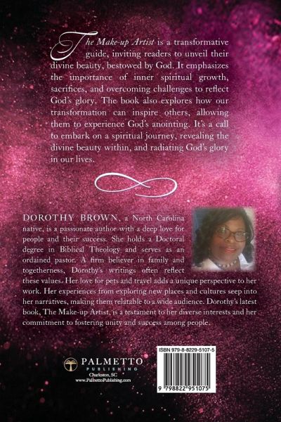Uncover Your Divine Beauty: A Journey of Spiritual Transformation and Sacrifice to Radiate God's Glory and Anointing in Your Life. This inspiring book is a guide to discovering the divine beauty that God has instilled within each of us. It is a journey of transformation, a path that leads us to reveal the glory of God in our lives. The book encourages readers to let God shape their lives from the inside out, allowing His glory to resonate through them, touching the lives of others with His anointing. The journey to display this divine beauty is not without its challenges. It requires sacrifices, traversing through valleys and wilderness, and shedding what hinders us. The book emphasizes that these trials are not punishments, but rather, they are the necessary steps to becoming the new creatures we are destined to be. It is through these experiences that we grow and evolve, enabling us to live a life that reflects God's glory. The Make-up Artist also highlights the importance of shielding ourselves from the enemy. It encourages readers to connect with what will protect them, guiding them to a place where they can radiate God's greatness. The book teaches that finding God's glory often means letting go of what we don't need, making room for the divine beauty to shine through. The Make-up Artist is not just about personal transformation, it is also about how our transformation can impact others. When we allow God's glory to shine through us, we become a source of inspiration and blessing for others. They can glean from God's greatness through us, experiencing His anointing in their own lives. The Make-up Artist is a powerful and transformative guide that speaks to all, regardless of age or walk of life. It is a call to embrace the journey of spiritual transformation and sacrifice, to uncover the divine beauty within, and to radiate God's glory and anointing in our lives.
