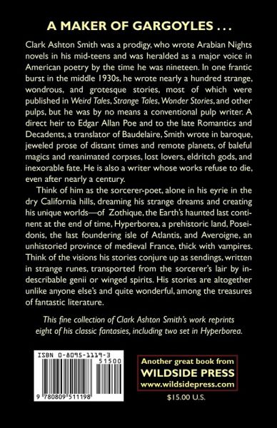 Clark Ashton Smith was a prodigy, who wrote Arabian Nights novels in his mid-teens and was heralded as a major voice in American poetry by the time he was nineteen. In one frantic burst in the middle 1930s, he wrote nearly a hundred strange, wondrous, and grotesque stories, most of which were published in Weird Tales, Strange Tales, Wonder Stories, and other pulps, but he was by no means a conventional pulp writer. A direct heir to Edgar Allan Poe and to the late Romantics and Decadents, a translator of Baudelaire, Smith wrote in baroque, jeweled prose of distant times and remote planets, of baleful magics and reanimated corpses, lost lovers, eldritch gods, and inexorable fate. He is also a writer whose works refuse to die, even after nearly a century. Think of him as the sorcerer-poet, alone in his eyrie in the dry California hills, dreaming his strange dreams and creating his unique worlds-of Zothique, the Earth's haunted last conti- nent at the end of time, Hyperborea, a prehistoric land, Posei- donis, the last foundering isle of Atlantis, and Averoigne, an unhistoried province of medieval France, thick with vampires. Think of the visions his stories conjure up as sendings, written in strange runes, transported from the sorcerer's lair by in- describable genii or winged spirits. His stories are altogether unlike anyone else's and quite wonderful, among the treasures of fantastic literature. This fine collection of Clark Ashton Smith's work reprints eight of his classic fantasies, including two set in Hyperborea.