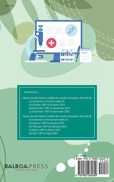 Introduction. Query results listed in tables for results of queries that list all consultations in the first week of: (a) October 2007 to October 2015 (b) November 1997 to November 2015 (c) December 1997 to December 2015 Query results listed in tables for results of queries that list all consultations in the second week of: (a) January 1997 to January 2015 (b) February 1997 to February 2015 (c) March 1997 to March 2015 (d) April 1997 to April 2012