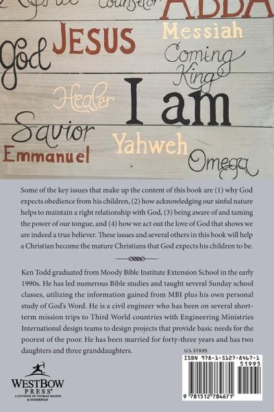 Some of the key issues that make up the content of this book are (1) why God expects obedience from his children, (2) how acknowledging our sinful nature helps to maintain a right relationship with God, (3) being aware of and taming the power of our tongue, and (4) how we act out the love of God that shows we are indeed a true believer. These issues and several others in this book will help a Christian become the mature Christians that God expects his children to be.