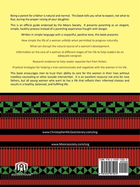 Being a parent for a father is natural and normal. This book tells you what to expect, not what to fear, during the proper raising of your daughter. This is an official guide endorsed by the Moors Society. It presents parenting as an elegant, simple, healthy process instead of a parenting experience fraught with danger. Written in simple language with a respectful, positive tone, this book presents: How simple the life of a woman unfolds when permitted to progress naturally. What can disrupt the natural course of a woman's development. Information on the care of a woman at different stages of her life to help readers be an adequate caregiver. Research evidence to help reader separate fact from fiction. Practical strategies for helping a man communicate and negotiate with the women in his life. This book encourages men to trust their ability to care for the women in their lives without needless counseling or other outside intervention. It is an excellent resource not only for new fathers, but all young women who want to live a life that reflects their informed choices and results in a healthy, balanced, and fulfilling life.