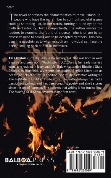 The novel addresses the characteristics of those "stand up" people who have the moral fiber to confront societal issues such as snitching-or, in her words, turning a blind eye to the truth and integrity. Just as importantly, the author invites the readers to examine the fabric of a person who is driven by an obsessive need to belong and to be accepted by others. This book begs the question as to whether such an individual can face the person looking back at him in the mirror.