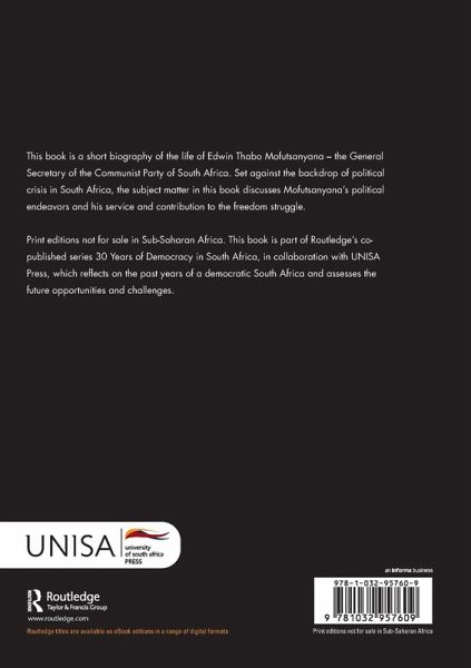 This book is a short biography of the life of Edwin Mofutsanyana â the General Secretary of the Communist Party of South Africa. Set against the backdrop of political crisis in South Africa, the subject matter in this book discusses Mofutsanyanaâ s political endeavors and his service and contribution to the freedom struggle.