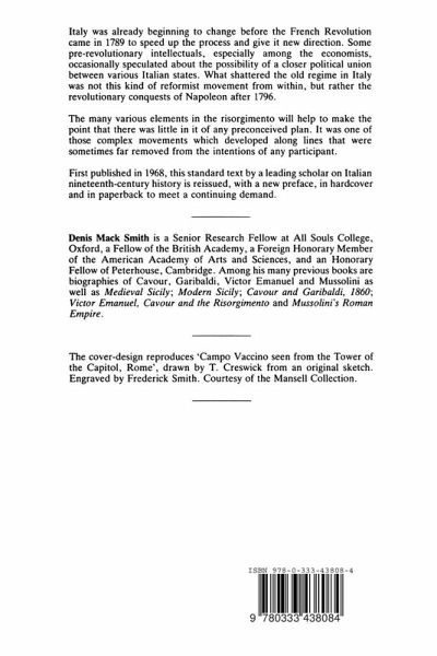 First published in 1968, this standard text on Italian nineteenth-century history is reissued, with a new preface, in hardcover and paperback, to meet a continuing demand.