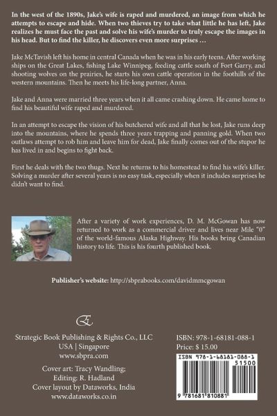 In the west of the 1890s, Jake's wife is raped and murdered, an image from which he attempts to escape and hide. When two thieves try to take what little he has left, Jake realizes he must face the past and solve his wife's murder to truly escape the images in his head. But to find the killer, he discovers even more surprises ... Jake McTavish left his home in central Canada when he was in his early teens. After working ships on the Great Lakes, fishing Lake Winnipeg, feeding cattle south of Fort Garry, and shooting wolves on the prairies, he starts his own cattle operation in the foothills of the western mountains. Then he meets his life-long partner, Anna. Jake and Anna were married three years when it all came crashing down. He came home to find his beautiful wife raped and murdered. In an attempt to escape the vision of his butchered wife and all that he lost, Jake runs deep into the mountains, where he spends three years trapping and panning gold. When two outlaws attempt to rob him and leave him for dead, Jake finally comes out of the stupor he has lived in and begins to fight back. First he deals with the two thugs. Next he returns to his homestead to find his wife's killer. Solving a murder after several years is no easy task, especially when it includes surprises he didn't want to find. After a variety of work experiences, D. M. McGowan has now returned to work as a commercial driver and lives near Mile "0" of the world-famous Alaska Highway. His books bring Canadian history to life. This is his fourth published book. Publisher's website: http://sbprabooks.com/davidmmcgowan