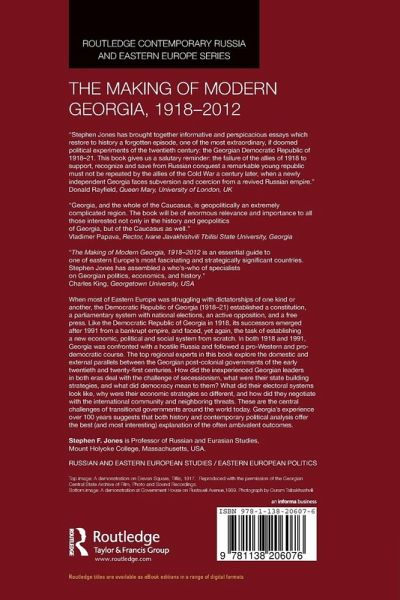 'The Making of Modern Georgia, 1918-2012 is an essential guide to one of eastern Europe's most fascinating and strategically significant countries. Stephen Jones has assembled a who's-who of specialists on Georgian politics, economics, and history. This international team traces the country's fractious politics and fraught foreign policy back to the Democratic Republic of Georgia (1918-1921) and reveals the enduring legacies of Georgians' first modern experiment with national self-government.' - Charles King, Georgetown University, USA, author of The Ghost of Freedom: A History of the Caucasus