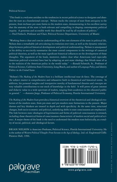 'Nelson's The Making of the Modern State is a brilliant intellectual Tour de Force. The erudition and scholarship of this major work of political philosophy are truly exceptional. The coverage of the subject matter as well is comprehensive and exhaustive both in theoretical and historical terms. In addition, his personal insights and interpretive novelty of fundamental theories and concepts are very valuable contributions to our stock of knowledge in the field. This book is a landmark in the literature of an academic genre known for its abstruseness. It will prove of great interest and didactic value to a wide spectrum of readers, ranging from academics to the educated public in general.'