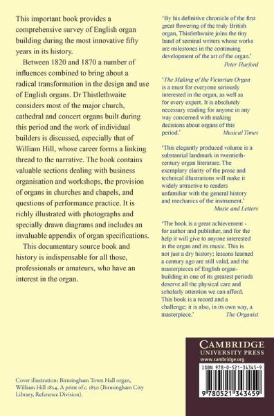 This important 1990 book provides a comprehensive survey of English organ building during the most innovative fifty years in its history. Between 1820 and 1870 a number of influences combined to bring about a radical transformation in the design and use of English organs. Thistlethwaite considers most of the major church, cathedral and concert organs built during this period and the work of individual builders is discussed, especially that of William Hill, whose career forms a linking thread to the narrative. The book contains valuable sections dealing with business organisation and workshops, the provision of organs in churches and chapels, and questions of performance practice. It is richly illustrated with photographs and specially drawn diagrams and includes an invaluable appendix of organ specifications. This documentary source book and history is indispensable for all those, professionals or amateurs, who have an interest in the organ.