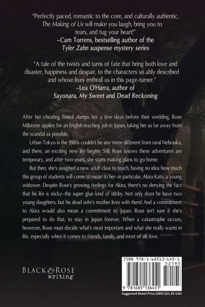 "A warm and tender story about love in Japan that leaps over seemingly insurmountable obstacles and crosses cultures. A+" -Suzanne Kamata, author of Cinnamon Beach and River of Dolls After her cheating fiancé dumps her a few days before their wedding, Rose Millstone applies for an English teaching job in Japan, taking her as far away from the scandal as possible. Urban Tokyo in the 1980s couldn't be any more different from rural Nebraska, and there, an exciting new life begins. Still, Rose knows these adventures are temporary, and after two years, she starts making plans to go home. But then, she's assigned a new adult class to teach, having no idea how much this group of students will come to mean to her-in particular, Akira Kato, a young widower. Despite Rose's growing feelings for Akira, there's no denying the fact that his life is sticky-the super glue kind of sticky. Not only does he have two young daughters, but his dead wife's mother lives with them! And a commitment to Akira would also mean a commitment to Japan. Rose isn't sure if she's prepared to do that, to stay in Japan forever. When a catastrophe occurs, however, Rose must decide what's most important and what she really wants in life, especially when it comes to friends, family, and most of all, love.